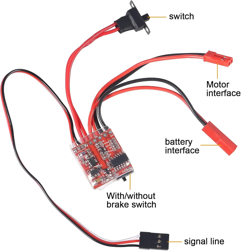 The ESC operates at a 2KHz driver frequency, ensuring a smooth and linear throttle curve without the “stuttering” often found in cheaper modules. It comes pre-soldered with high-quality silicone wires that remain flexible in tight spaces. With built-in support for a wide range of small brushed motors (up to 380 size), it’s a versatile upgrade for almost any sub-1/16 scale RC project.