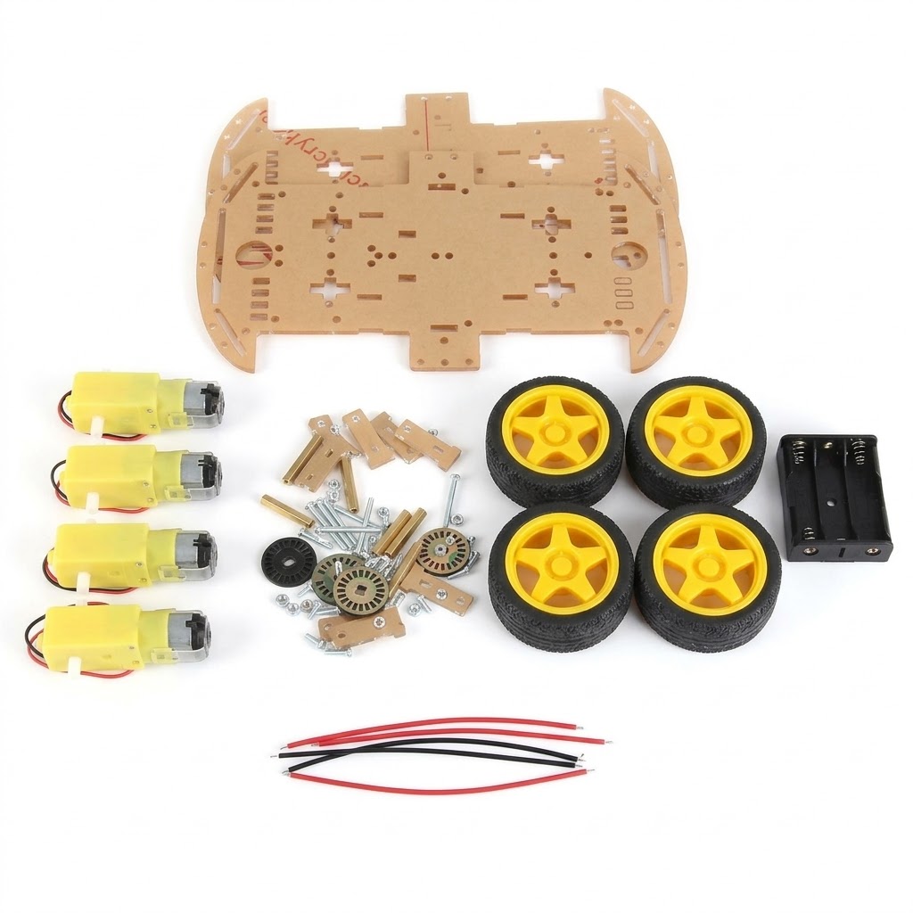 The kit features a dual-chassis design, giving you two levels of mounting surface. This allows you to place heavy components like battery packs and motors on the bottom tier, while keeping your delicate electronics, such as an Arduino or Raspberry Pi, safe and accessible on the top tier. The laser-cut acrylic is pre-drilled with multiple mounting holes for easy installation of various sensors and modules.