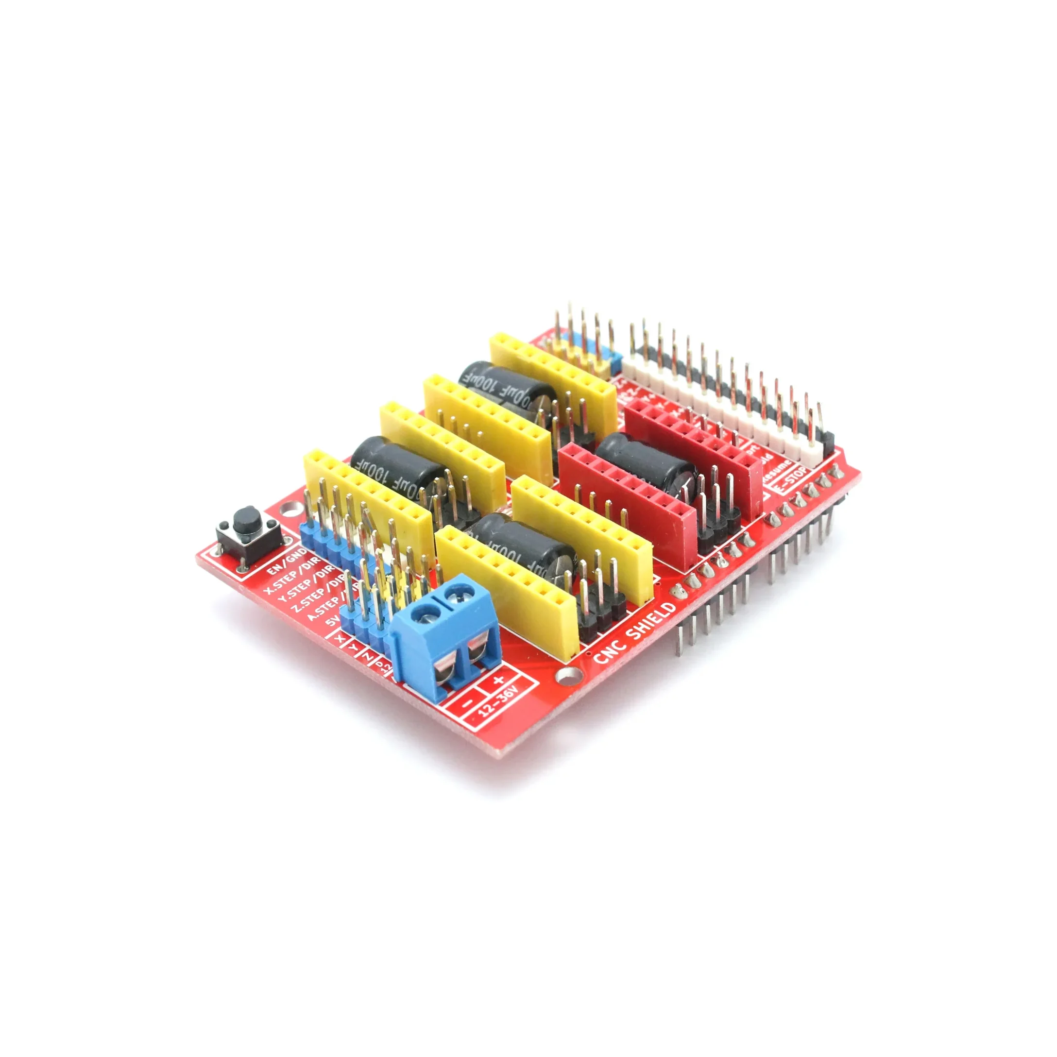 The Arduino CNC Shield V3 is a powerful and affordable GRBL-based solution for your CNC and automation projects. Compatible with Arduino UNO, it supports up to 4 stepper motor drivers (A4988, DRV8825, etc.) for precise control of X, Y, Z, and A axes. Perfect for CNC routers, laser engravers, plotters, and 3D printers, this shield ensures stable performance and easy configuration. Get genuine Arduino CNC Shield V3 at roboshopbd with fast delivery anywhere in Bangladesh.