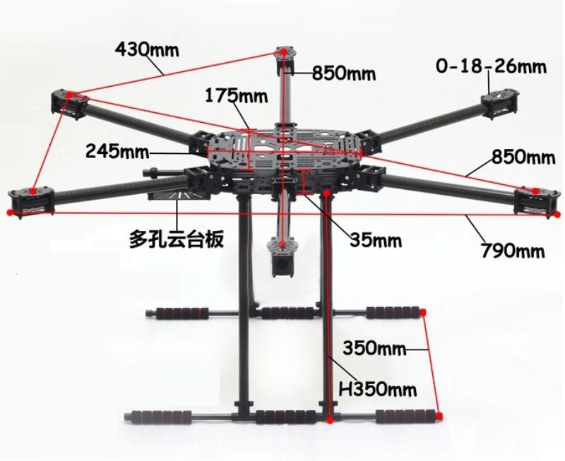 • 850mm Wheelbase: Supports massive 15-inch to 16-inch propellers for maximum lift.